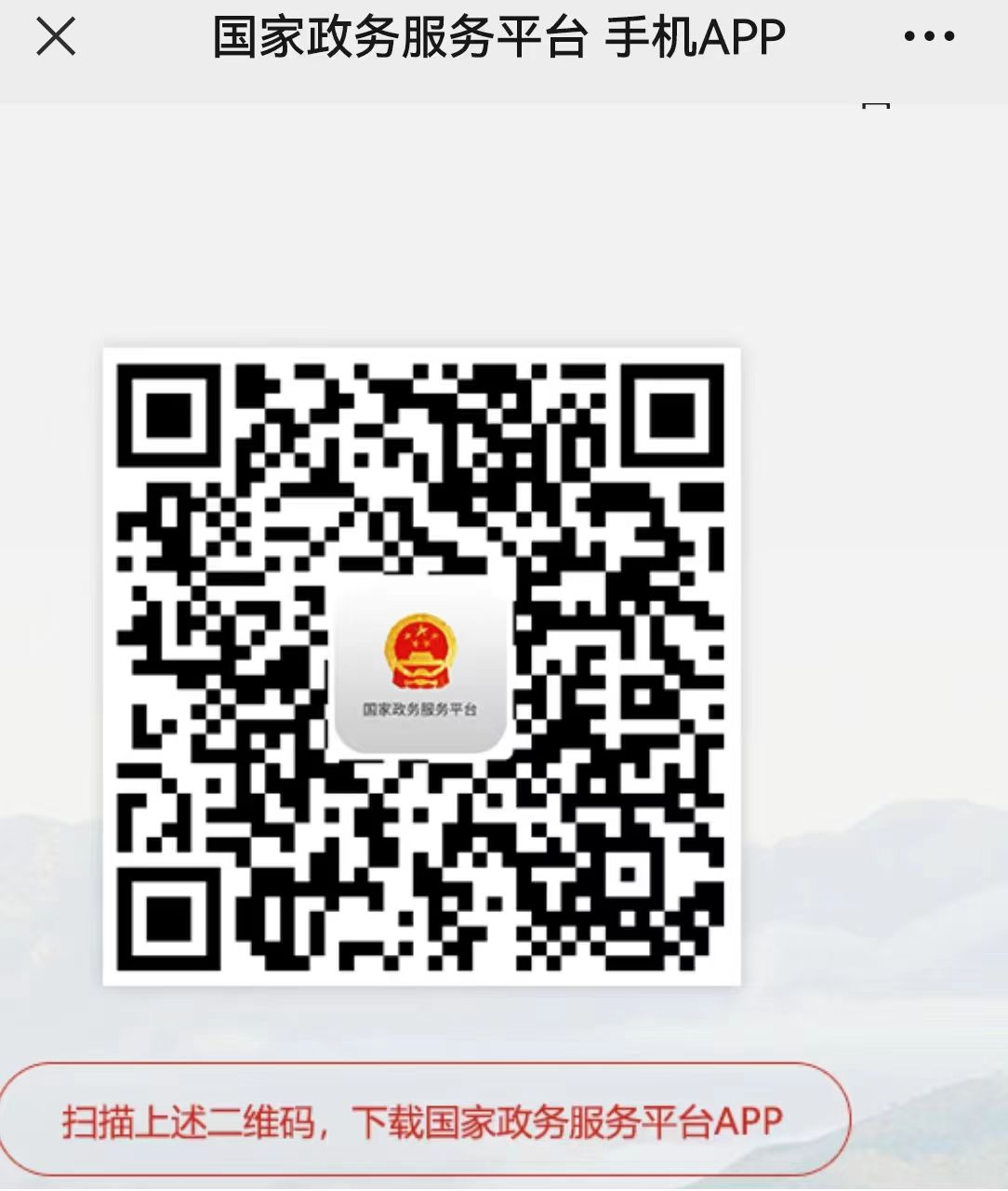 (四)填写信息完成后,扫描如下二维码图下载国家政务平台APP或者在手机用户商店中搜索“国家政务服务平台”下载国家政务服务平台app,进行人脸识别,完成查档服务平台账号注册。